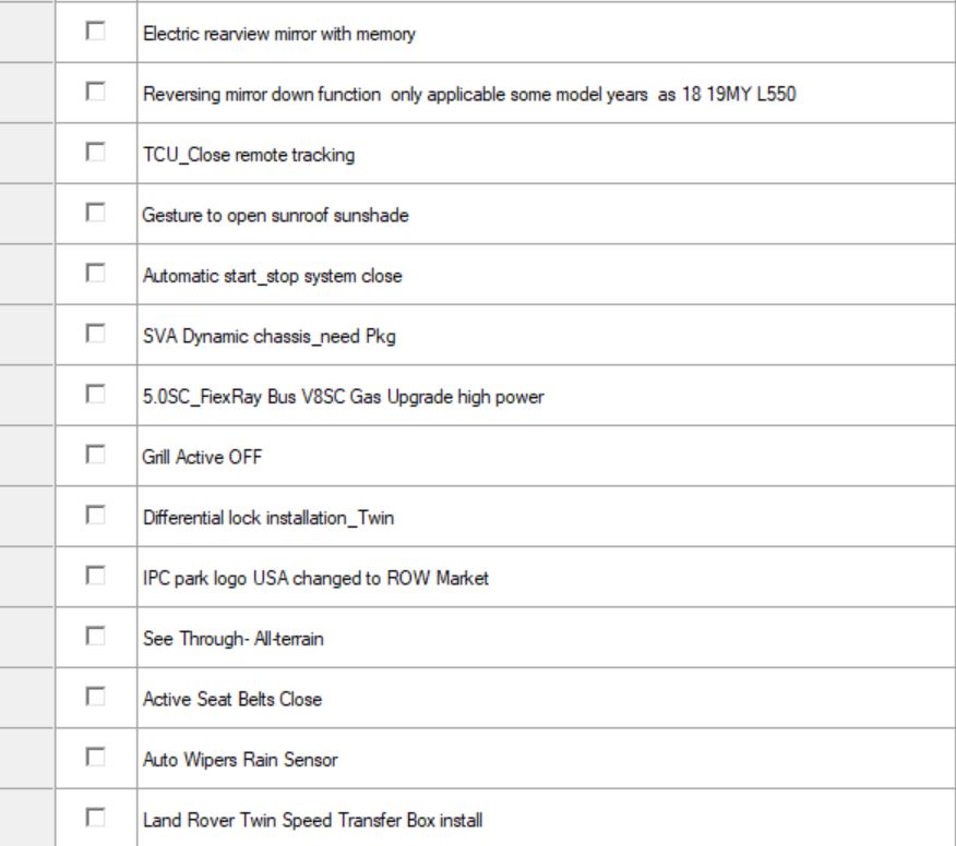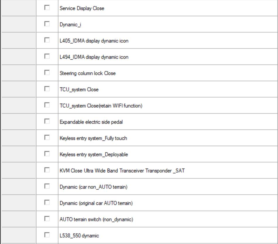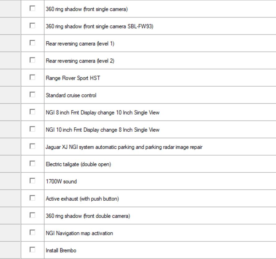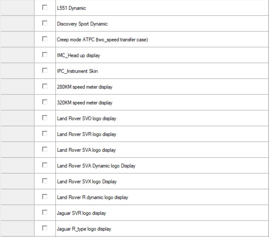 Below are the real software pictures of CCF online options we have added so far and its increasing day by day, please have a look at the options in figures below, which will show how powerful is our tool, which allows you to do these modifications in any JLR vehicle by just a single click.